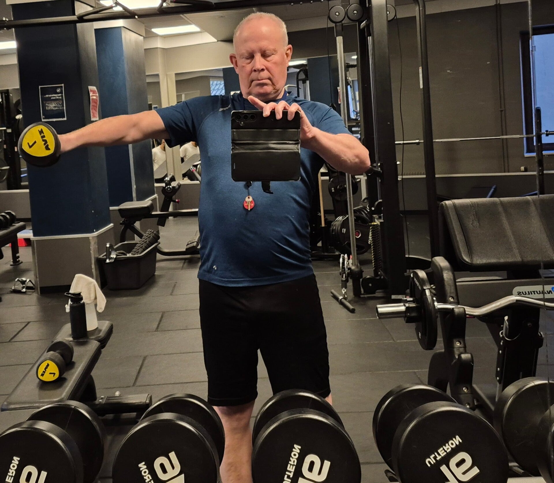 Knutten Kenneth sitter mycket i roddmaskinen, medan Ankan Anders här på bilden tränar med hantlarna.